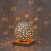 Lampara de ceramica modelada a mano 13 cm de alto y base de madera