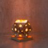 Lampara de ceramica modelada a mano 13 cm de diametro y base de madera